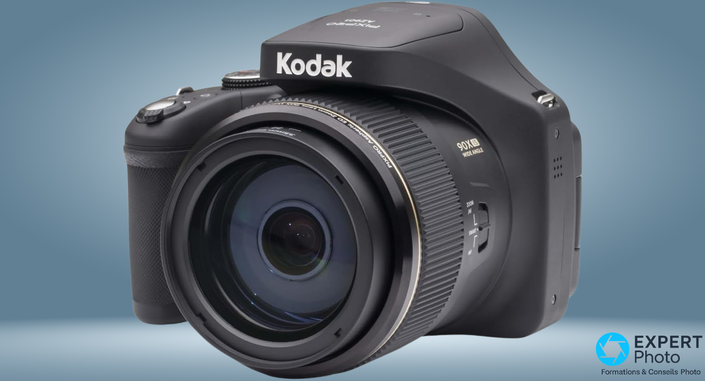 Le Kodak AZ901 continue d’attirer un profil bien précis : celui qui veut aller très loin sans entrer dans l’univers des objectifs interchangeables. Sur le papier, la promesse est séduisante — zoom optique 90x, plage 22–1980 mm équivalent, capteur BSI CMOS 20 MP, écran orientable, Wi-Fi. Pour de l’observation, des sujets lointains en voyage ou de l’animalier de loisir, l’idée reste séduisante.